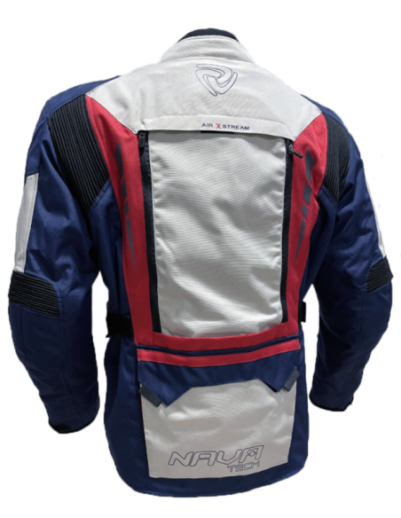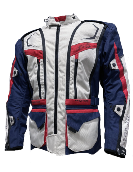 * Chaqueta touring para hombre de corte largo tipo 3/4.* Triple forro desmontable de lluvia y frío.* Confeccionada en Poliéster 600D.* Parte frontal y trasera desmontable convirtiéndola en una cazadora de verano totalmente transpirable.* Protecciones extraíbles en codos, hombros y espalda.* Botones ajustables en el brazo.* Grandes bolsillos exteriores.* Cinturón ajustable en cintura.* Puños ajustables con cremallera y velcro.* Reflectante para mejorar la visibilidad nocturna.* Fuelle para mayor comodidad en hombros y codos.* Chaqueta 4 estaciones con HOMOLOGACIÓN CE* Tallas: S – M – L – 2XL