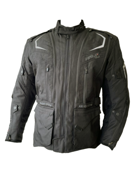 * Chaqueta touring para hombre de corte largo tipo 3/4.* Triple forro desmontable de lluvia y frío.* Confeccionada en Poliéster 600D.* Parte frontal y trasera desmontable convirtiéndola en una cazadora de verano totalmente transpirable.* Protecciones extraíbles en codos, hombros y espalda.* Botones ajustables en el brazo.* Grandes bolsillos exteriores.* Cinturón ajustable en cintura.* Puños ajustables con cremallera y velcro.* Reflectante para mejorar la visibilidad nocturna.* Fuelle para mayor comodidad en hombros y codos.* Chaqueta 4 estaciones con HOMOLOGACIÓN CE* Tallas: S a 2XL