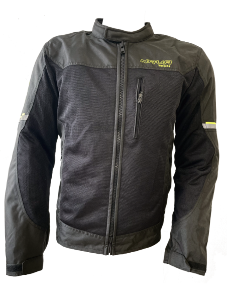 * Chaqueta de verano perforada para hombre.* Confeccionada en Poliéster y tejido transpirable Mesh 100% ventilada.* Bolsillos delanteros con cremallera.* Regulación de velcros en puños, caderas y cuello.* Cortavientos interior extraíble e impermeable.* Protecciones desmontables en codos, hombros y espalda.* Reflectante para una mejor visibilidad nocturna.* Chaqueta muy ligera de confort extra.* Tallas : S a 2XL