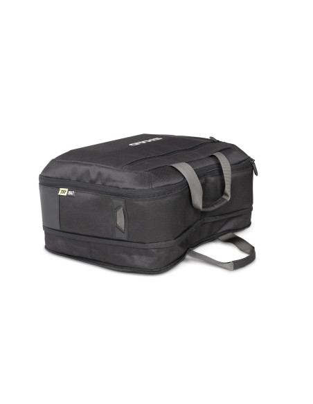 Bolsa interna para la gama Terra. Ajuste expandible y perfecto para todas las maletas Terra: top y laterales, grandes y pequeñas. 22-32L o capacidad para 1 casco en las maletas top TR48/TR47. Fabricada en poliéster 600D. Bolsillo de rápido acceso en cuanto abres la maleta. Bolsillo interior acolchado de malla. Correas de ajuste y cremalleras fáciles de usar con guantes. 2 opciones para su transporte: correa de hombro acolchada o asa acolchada.