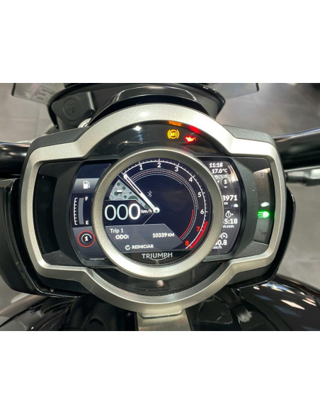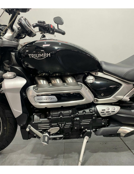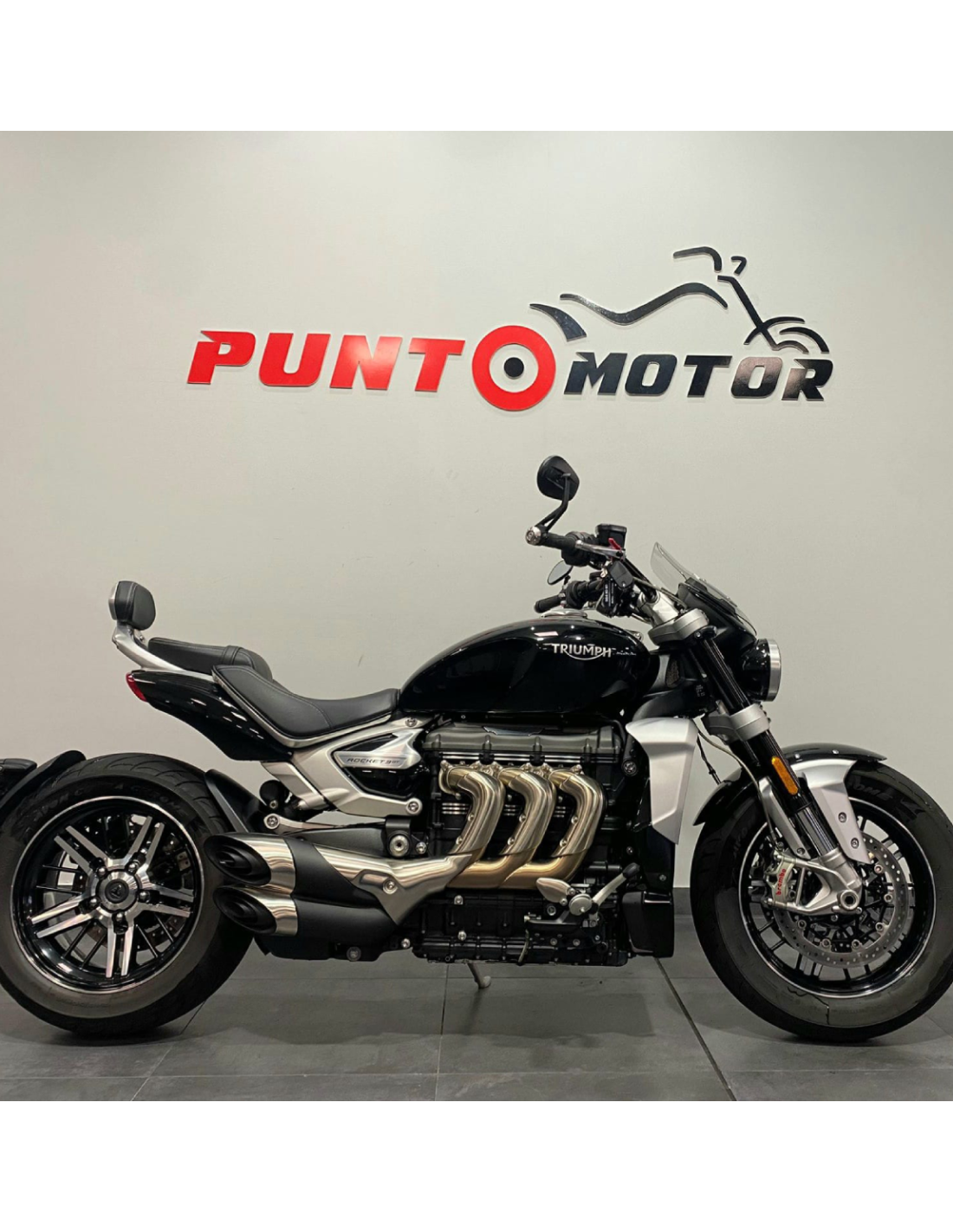 Vehículo revisado, TRIUMPH ROCKET 3 GT, 2023 con 10339 kms, TRANSFERIDO, entrega inmediata, FINANCIACION a medida con posibilidad de cancelaciones parciales y cancelación total antes de tiempo, revisiones al día EN CONCESIONARIO OFICIAL TRIUMPH y metidas en el portal de Triumph, PRACTICAMENTE NUEVA. Motor de 2458 cc con una potencia de 167 cv y un par motor de 221 Nm aceleración de 0 a 100 km/h en menos de 3 segundos y caja de cambios de 6 velocidades. IMU encargada de gestionar el ABS y el control de Tracción incluso con la moto inclinada. Modos de conducción Road, Rain Sport y Rider (configurable), asistente de salidas en cuesta, toma USB, puños calefactables, ordenador de abordo, sistema de iluminación Full-Led, control de crucero, asistente para cambio rápido sin embrague, embrague antirrebore, , transmisión por cardan, control de presión de neumáticos (TPMS), navegador Turn-by-Turn de o Google que se conecta con Bluetooth "My Triumph app" y sistema de control GoPro, pantalla TFT. Horquilla invertida / suspensiones Showa con pinzas radiales y frenos Brembo. 750 mm de altura del asiento al suelo, 18 L de capacidad de combustible, 294 kg de peso.