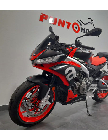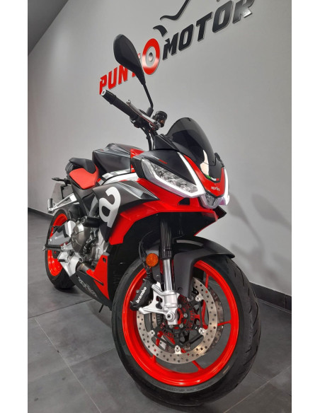 Vehículo revisado, APRILIA TUONO 660, 2022 con 3165 kms, TRANSFERIDO, entrega inmediata, FINANCIACION a medida con posibilidad de cancelaciones parciales y cancelación total antes de tiempo, revisiones al día EN CONCESIONARIO OFICIAL, LIBROS, PRACTICAMENTE NUEVA, pintura original. Sistema de iluminación FULL-LED, conducción diurna DRL. Motor de dos cilindros en linea de 660 cc y 95 cv de potencia (esta versión no es valida para el A2 y tampoco tiene limitación). Horquillas invertidas Kayaba de 41 mm y amortiguador trasero regulable en precarga y extensión. Sistema de frenado ABS con pinzas de freno Brembo radiales y discos de freno de 320 mm. Acelerador electronico Ride-By-Wire, plataforma inercial -IMU- de dos ejes, control de tracción, control anti caballito, control de velocidad de crucero, control del freno motor, mapas de motor, embrague anti rebote. Pantalla TFT a color con conectividad con el smartphone, ordenador de abordo, luz sobre sobre regimen, indicador de marcha engranada, recordatorio de revisiones, 820 mm de altura del asiento al suelo, 15L de capacidad de combustible con un consumo medio de 4.9L/100km. inmovilizador electronico, maneta de freno y de embrague regulables