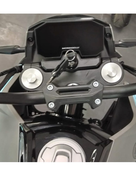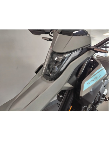 Vehículo NUEVO, MORBIDELLI T125, 2025, SEGURO GRATIS POR UN AÑO (los menores de 25 años, pagarían un suplemento), FINANCIACION a medida con posibilidad de cancelación parcial y cancelación total antes de tiempo. Motor de 125 cc refrigerada por agua y 10,8 kw de potencia (14,68 cv) con 6 velocidades, Horquilla invertida de 41 mm con 177 mm de recorrido, llanta delantera de 19" y trasera de 17". Pantalla digital LCD con indicador de marcha engranada y mandos iluminados en el manillar, puerto USB, iluminación Full Led, sistema de frenado ABS, 820 mm de altura del asiento al suelo.