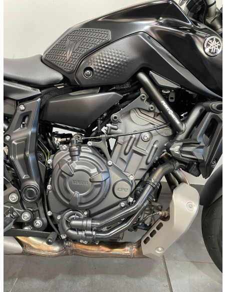 Vehículo revisado, YAMAHA MT-07, 2022 con 37142 kms, TRANSFERIDO, entrega inmediata, FINANCIACION a medida con posibilidad de cancelaciones parciales y cancelación total antes de tiempo, revisiones al día en concesionario oficial Yamaha con historial de revisiones, sistema de frenado ABS con doble disco de freno delantero, pintura original, sistema de iluminación FULL-LED, instrumentación tipo LCD, ordenador de a bordo, indicador de marcha engranada, tacos protectores de motor, cúpula ahumada, 14 litros de capacidad de combustible con un consumo de 4,2 L/100km, , 805 mm de altura del asiento al suelo, motor de 689 cc "crossplane" refrigerado por agua y 74 cv de potencia (limitada para el A2 con 35 kw). Horquilla convencional y amortiguador trasero Kayaba regulable en rebote.