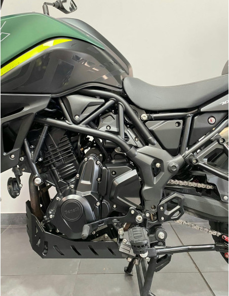 BENELLI TRK 702 X, año 2024 con 20530 kms, Revisiones al día con libros, entrega inmediata, transferida, Financiación a medida con posibilidad de cancelación parcial y cancelación total antes de tiempo. Sistema de iluminación LED, frenos ABS, llantas de radios, piñas de luces iluminadas, protectores de puños, pantalla TFT con conectividad bluetooth, caballete, motor bicilindrico de 700 cc y posibilidad de limitación para el A2, refrigeración liquida. Maleta en aluminio Shad Terra para dos cascos, alarma, cubre Carter, posibilidad de reducción de altura.
