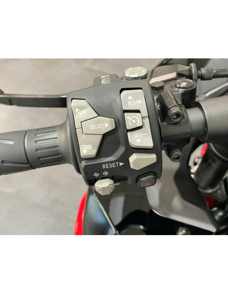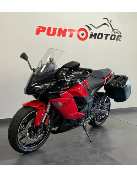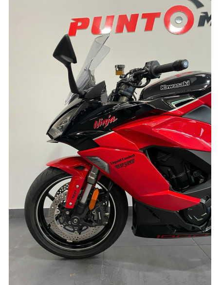 Iluminación Full-Led, pantalla TFT a color de 4,3" Bluetooth con conectividad para móvil mediante la aplicación Rideology de Kawasaki, cambio rápido bidireccional (KQS), control de velocidad automático, acelerador electronico, cuatro modos de motor: Sport, Road, Rin y Rider, control de tracción (KTRC) con tres niveles y sistema de frenada antibloqueo (KIBS) cúpula regulable, puños calefactables, maletas laterales originales de Kawasaki. No es valida para el A2.