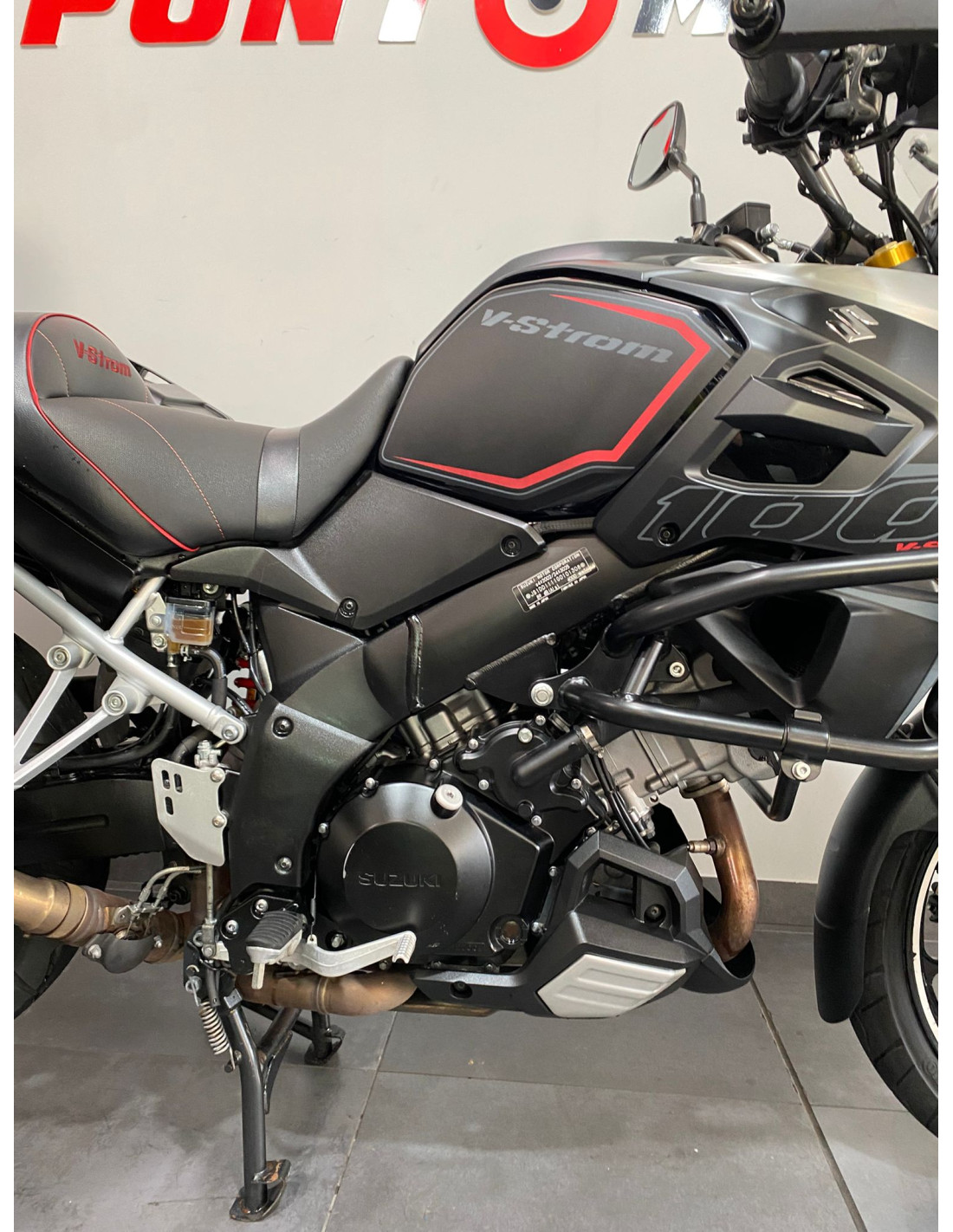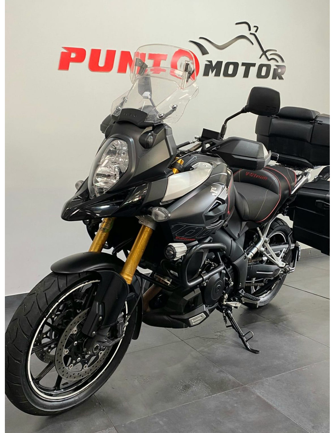 Vehículo revisado, SUZUKI V-STROM 1000, 2017 con 54102 kms, TRANSFERIDO, entrega inmediata, FINANCIACION a medida con posibilidad de cancelaciones parciales y cancelación total antes de tiempo, revisiones al día con libro sellado, pintura original, ITV al día, defensas de motor, quilla, caballete, cubre manos, suspensión delantera y trasera Kayaba, baúl para dos cascos con respaldo y maletas laterales, sistema de frenado ABS con doble disco de freno delantero y uno trasero, control de tracción con tres modos, indicador de marcha engranada, toma de corriente, Motor de dos cilindros en V refrigerado por agua con 100 cv de potencia. 850 mm de altura del asiento al suelo, 20 L de capacidad de combustible, toma de corriente, inmovilizador electronico, puños calefactables, pantalla regulable manualmente, faros auxiliares, asiento de gel, bieletas y las originales, escape deportivo homologado para itv con papeles, toma de corriente, alzas de manillar.