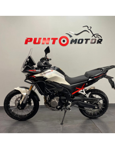 Vehículo NUEVO, MORBIDELLI T352X, 2025, SEGURO GRATIS POR UN AÑO (los menores de 25 años, pagarían un suplemento), FINANCIACION a medida con posibilidad de cancelación parcial y cancelación total antes de tiempo. Motor de 349 cc refrigerada por agua y 41 CV de potencia con 6 velocidades, embrague anti rebote, 3 modos de conducción, control de tracción, Pantalla vertical tipo rally puerto USB, iluminación Full Led, sistema de frenado ABS Bosch (en el modo Off-Road, el ABS se desactiva), mandos retroiluminados, BOTON SOS en el manillar, sistema antirrobo remoto y navegación GPS (aplicación gratis x 1 año). 820 mm de altura del asiento al suelo, 180 kg de peso en orden de marcha. 18 L de capacidad de combustible con un consumo de 4,3 l/100 km. Llantas de radios sin cámara. Horquilla delantera invertida y amortiguador trasero con articulación. Valida para el A2.