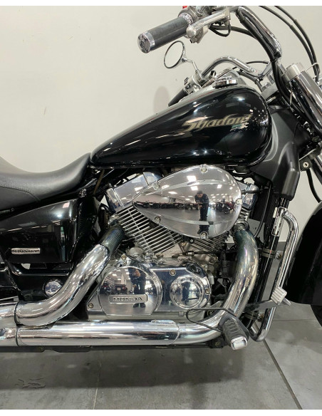 Vehículo revisado, HONDA VT 750 C SHADOW, 2005 con 10490 kms, TRANSFERIDO, entrega inmediata, FINANCIACION a medida con posibilidad de cancelaciones parciales y cancelación total antes de tiempo, revisiones al día en concesionario oficial, pintura original y pegatinas originales, PRACTICAMENTE NUEVA con tan solo 10490 kms y único dueño, impecable, toda de serie, excepto un respaldo que tiene a mayores, ITV AL DIA, VALIDA para el A2. Motor de 745 cc refrigerado por agua con 45 cv de potencia, transmisión manual de 5 velocidades, frenos de disco delanteros y tambor trasero. 700 mm de altura del asiento al suelo, 238 kg de peso, 14,5 L de capacidad de combustible. Cromados perfectos.