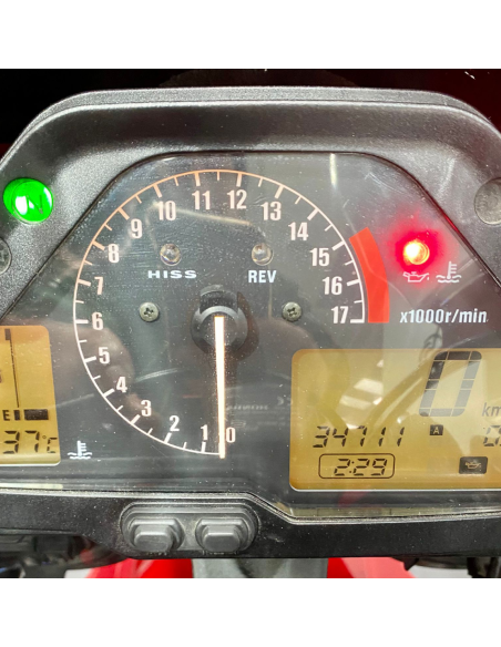 Vehículo revisado, HONDA CBR 600 RR, 2004 con 34711 kms, TRANSFERIDO, entrega inmediata, FINANCIACION a medida con posibilidad de cancelaciones parciales y cancelación total antes de tiempo, revisiones al día, ITV al día, tapa de colín, cuenta marchas. Motor de 599 cc, 4 válvulas por cilindro refrigerado por agua con 116 cv de potencia. 820 mm de altura del asiento al suelo, 169 kg de peso, 18 litros de capacidad de combustible, doble disco delantero y uno trasero.