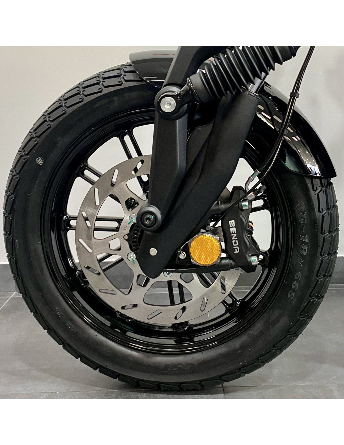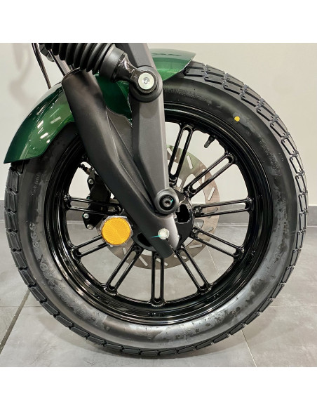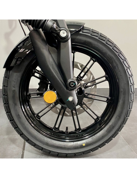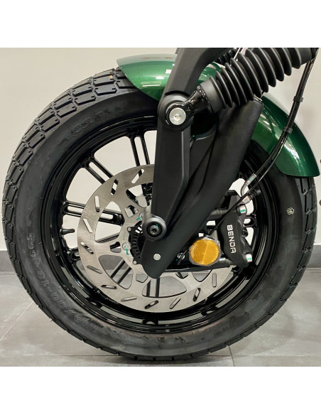 La Napoleon Bob 125 combina lo mejor del estilo clásico y la tecnología moderna, convirtiendo cada viaje en una declaración de estilo y potencia. Es hora de destacar con el auténtico espíritu Bobber que sólo Benda puede ofrecer.Para detener las "grandes" arrancadas del motor (Vmax de 120 km/h) o al menos a la tripulación (la moto pesa 182 kg con los depósitos llenos), los frenos son un disco de 300 mm delante y 240 mm detrás, controlados por ABS