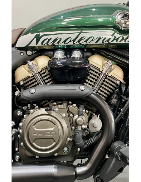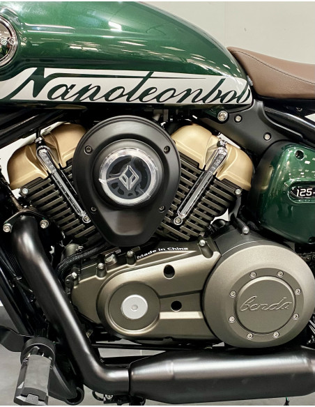 En el corazón de la Napoleon Bob 125 se encuentra un motor bicilíndrico en V de 125 cc que entrega 14CV y 14,5 Nm de par a 8.500 rpm, con una velocidad máxima de 120 km/h. Diseñada para un rendimiento óptimo, la transmisión de 6 velocidades con embrague deslizante garantiza unos cambios suaves y una experiencia de conducción dinámica.